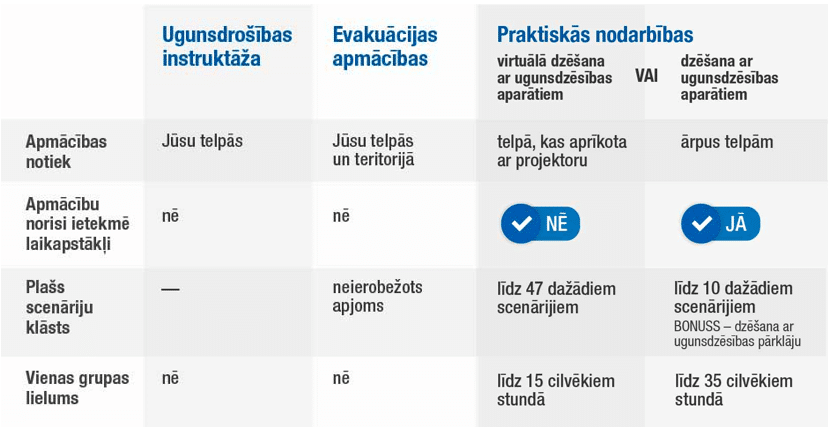 Lai palīdzētu īstenot likumdošanas prasības atbilstoši MK noteikumiem nr. 238 ‘’Ugunsdrošības noteikumi’’ un sagatavotu savu darbinieku komandu drošai rīcībai ārkārtas situācijā, FN-SERVISS eksperti vērš uzmanību, ka uzņēmumiem un organizācijām reizi gadā nepieciešams veikt: