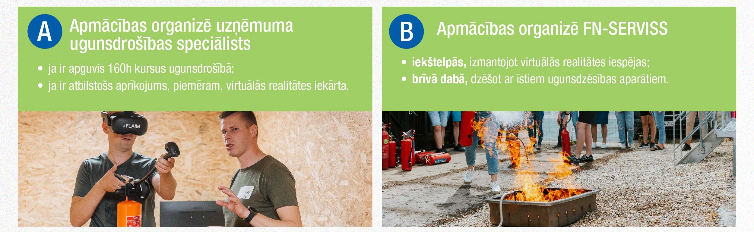 Objektā, kur vienlaikus var atrasties 50 + cilvēki, praktiskās nodarbībās ugunsdrošībā jānodrošina OBLIGĀTI, taču FN-SERVISS ugunsdrošības speciālisti rekomendē apgūt šīs prasmes ikvienam!