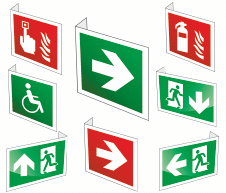 Luminiscējoša dubultā norāde “Virziens uz ugunsdzēsības līdzekļu atrašanās vietu” 15 x 15 cm