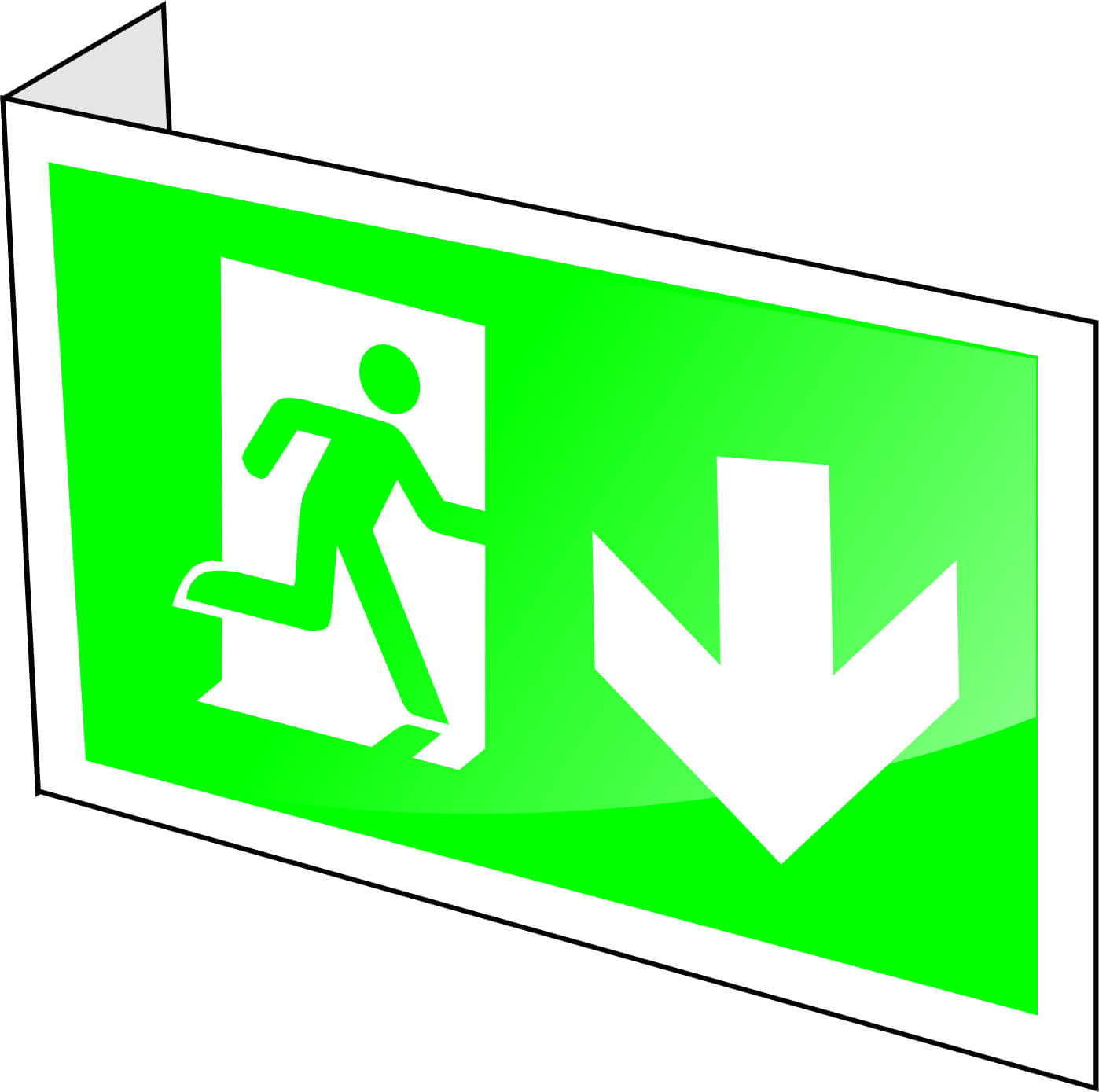 Gaiteņos, ja zīmi nav iespējams piestiprināt pie griestiem un tā nemaldinās lietotāju, zīmi stiprina pie sienām 90 vai 100 grādu leņķī attiecībā pret sienu tā, lai to iespējams redzēt no gaiteņa gala. Zīme nedrīkst traucēt cilvēku evakuāciju.