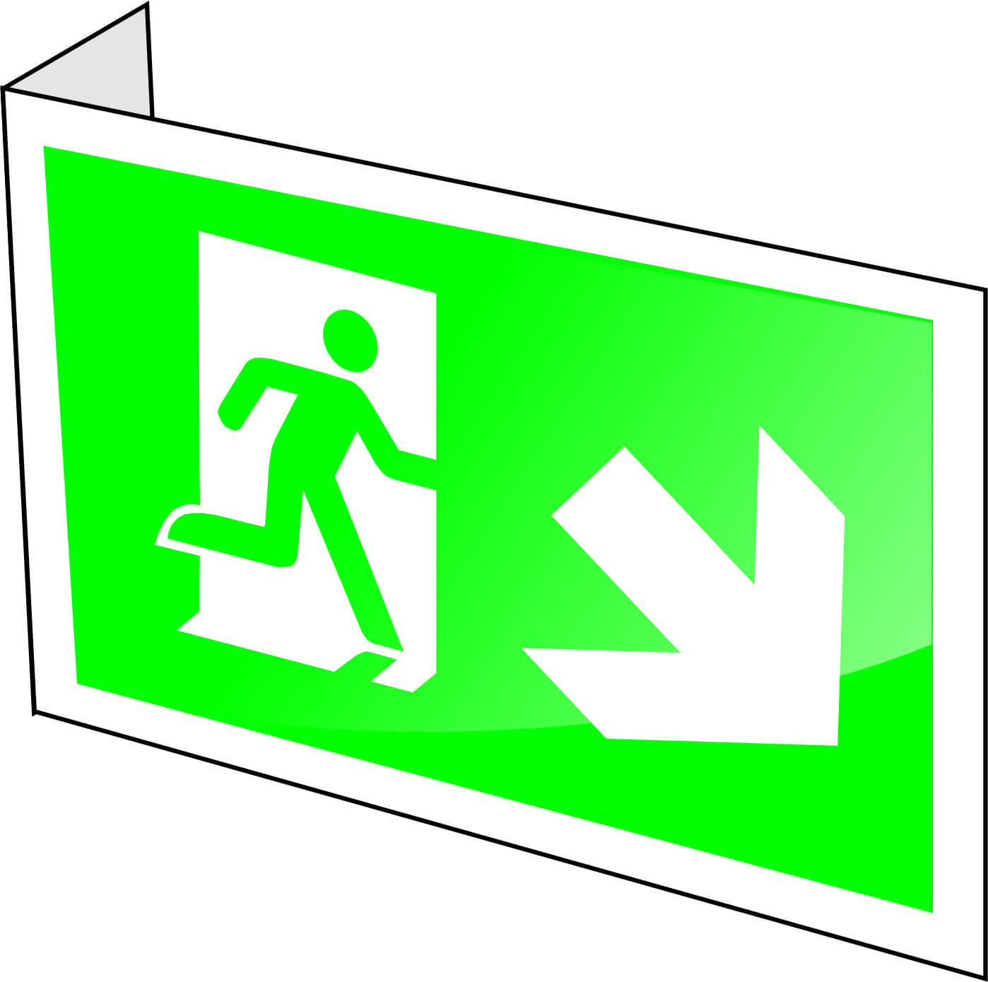 Gaiteņos, ja zīmi nav iespējams piestiprināt pie griestiem un tā nemaldinās lietotāju, zīmi stiprina pie sienām 90 vai 100 grādu leņķī attiecībā pret sienu tā, lai to iespējams redzēt no gaiteņa gala. Zīme nedrīkst traucēt cilvēku evakuāciju.