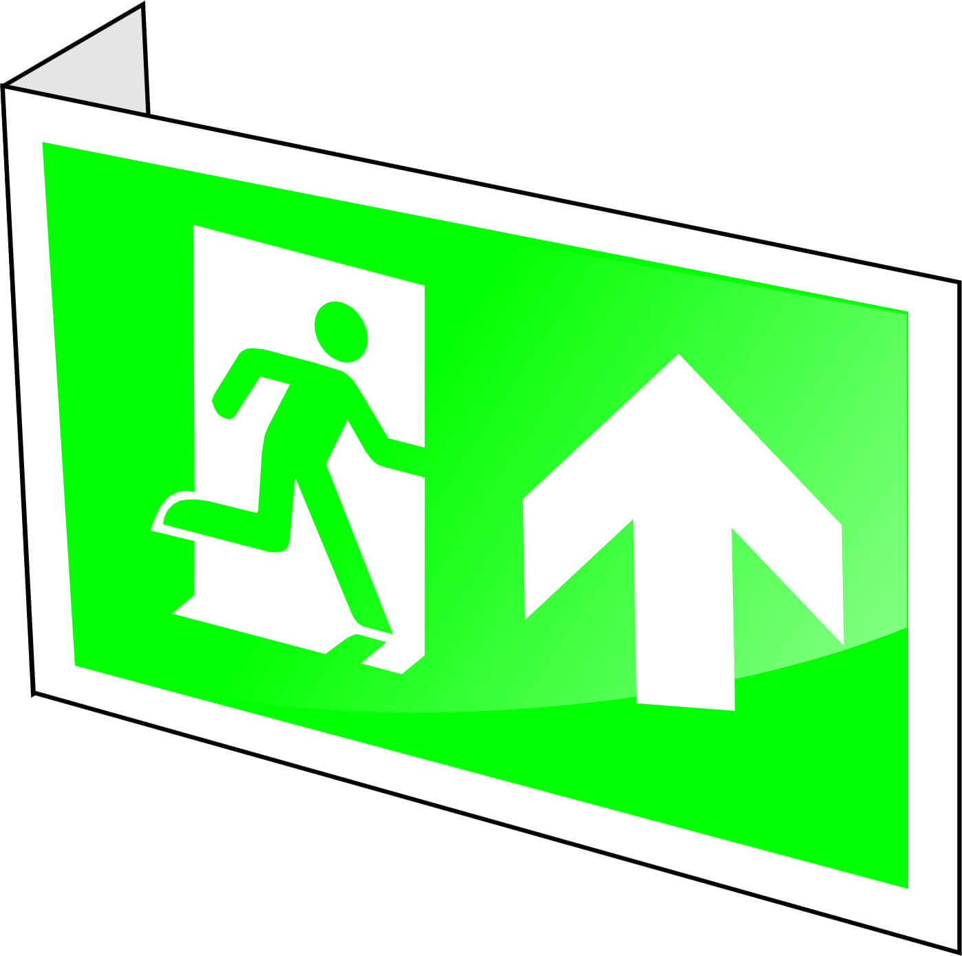 Gaiteņos, ja zīmi nav iespējams piestiprināt pie griestiem un tā nemaldinās lietotāju, zīmi stiprina pie sienām 90 vai 100 grādu leņķī attiecībā pret sienu tā, lai to iespējams redzēt no gaiteņa gala. Zīme nedrīkst traucēt cilvēku evakuāciju.