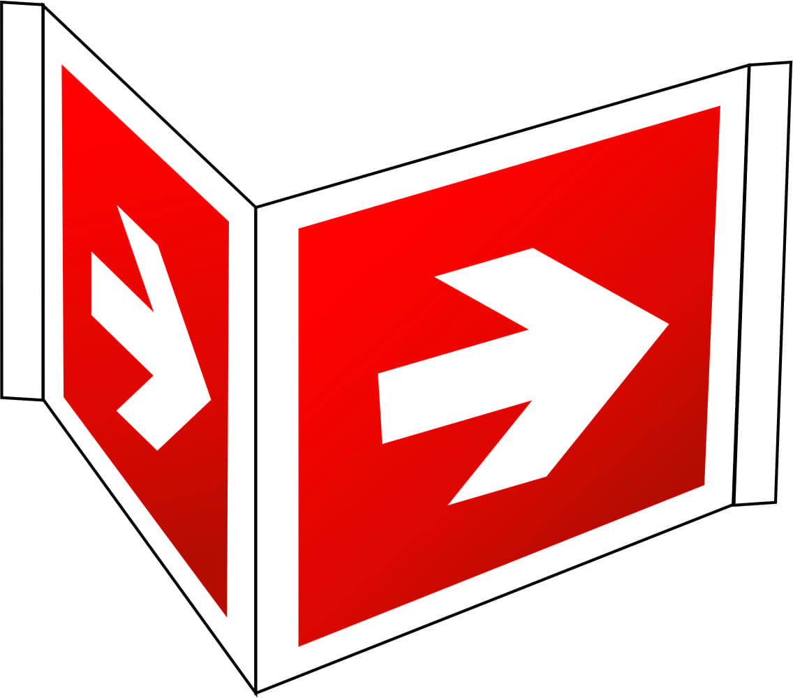 Gaiteņos, ja zīmi nav iespējams piestiprināt pie griestiem un tā nemaldinās lietotāju, zīmi stiprina pie sienām 90 vai 100 grādu leņķī attiecībā pret sienu tā, lai to iespējams redzēt no gaiteņa gala. Zīme nedrīkst traucēt cilvēku evakuāciju.
