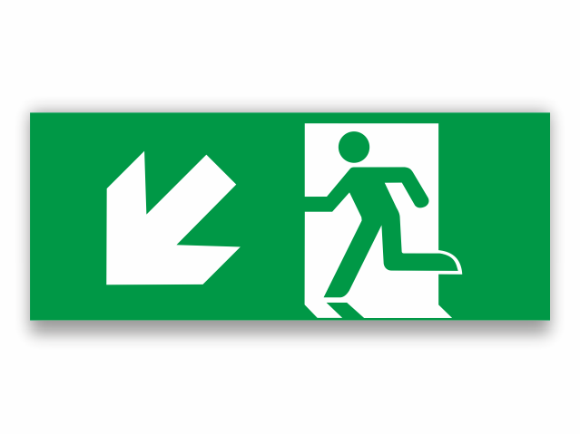 Luminiscējoša uzlīme “Virziens uz leju pa kreisi” 20×10 cm