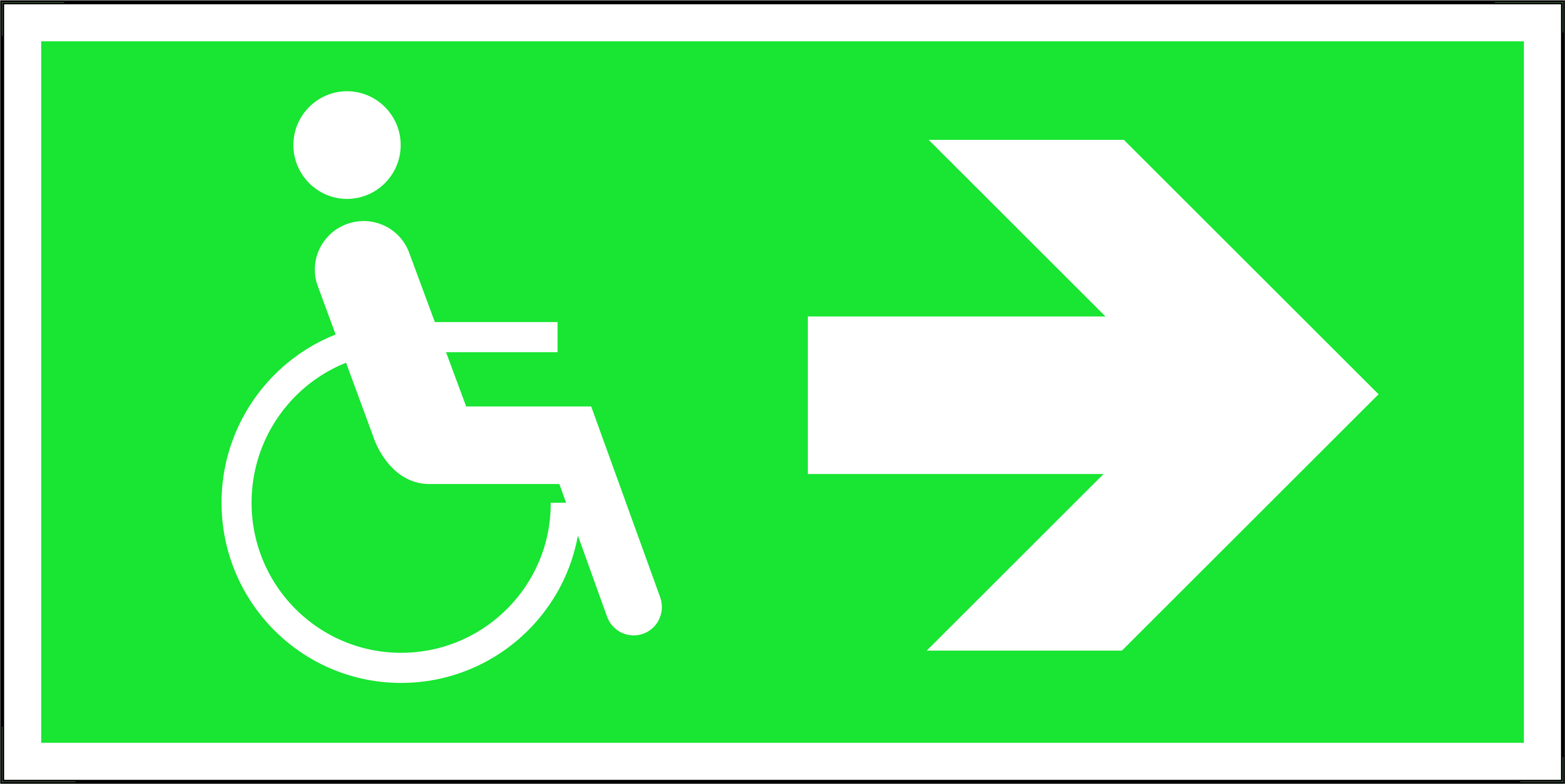 Luminiscējoša uzlīme “Virziens pa labi uz evakuācijas izeju cilvēkiem ar kustību traucējumiem” 20×10