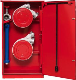 Metāla aizsargkaste āra1250x700x350 hidrata kolonnai, atslēgai, 2 ugunsdzēsības šļūtenēm uz ruļļa