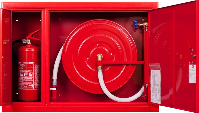 Pilnie komplekti ar 25 20/30m ugunsdzēsības, stobru un krānu 650x950x250mm