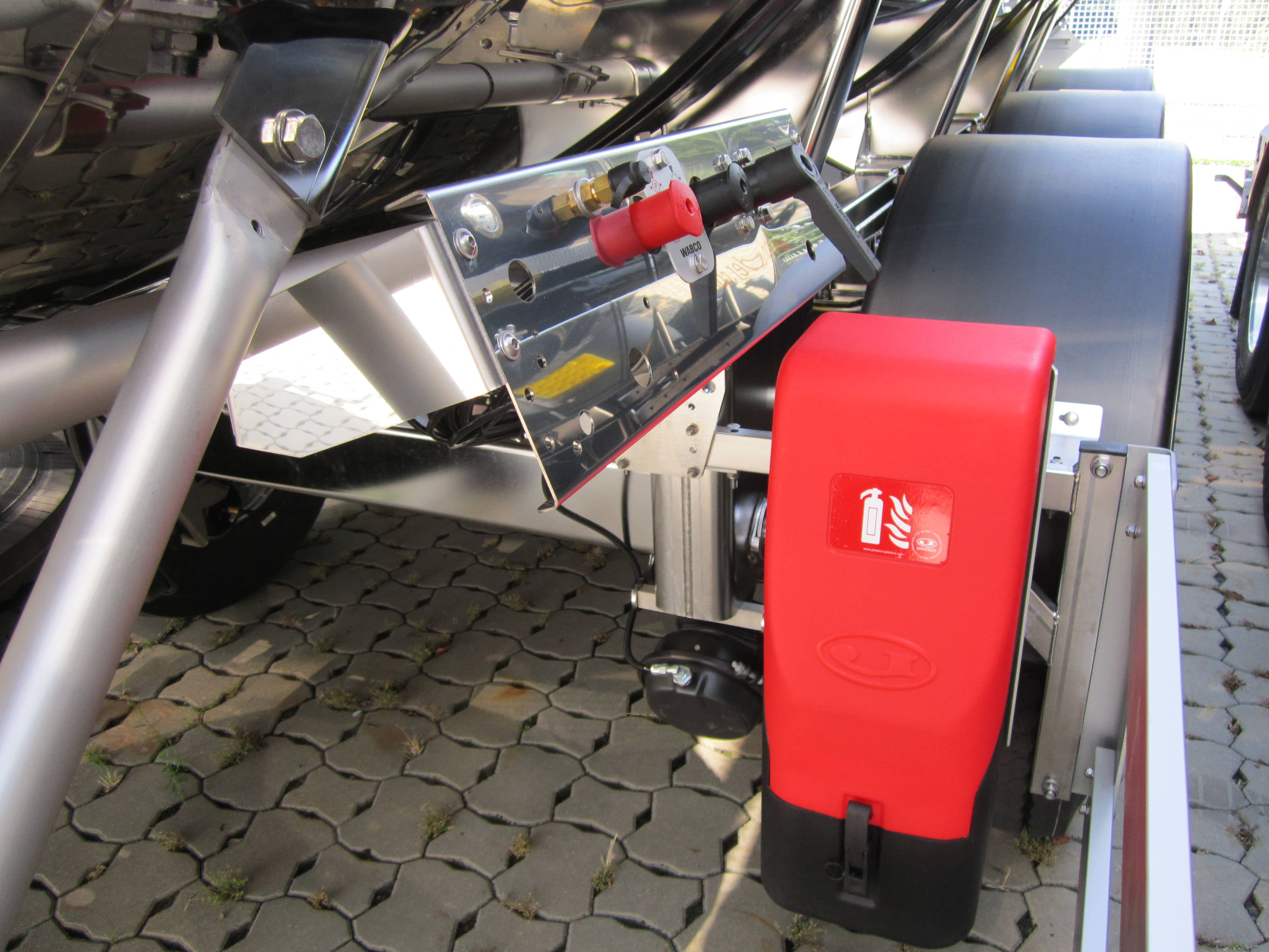 Ugunsdzēsības aparāta kaste ir aprīkota ar speciālu stiprinājumu, lai ierobežotu ugunsdzēsības aparāta kustību pārvadāšanas laikā.