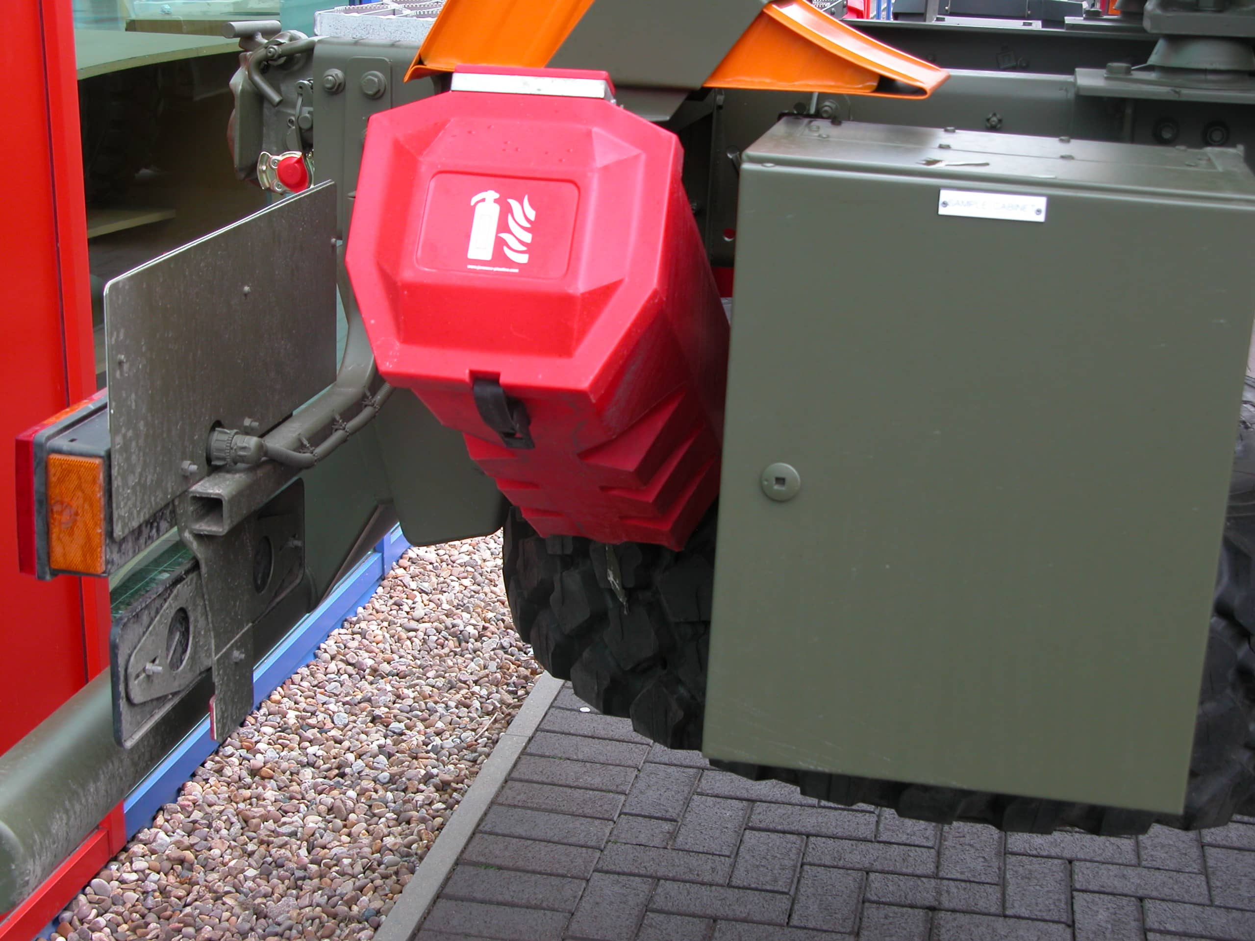 Ugunsdzēsības aparāta kaste ir aprīkota ar speciālu stiprinājumu, lai ierobežotu ugunsdzēsības aparāta kustību pārvadāšanas laikā.