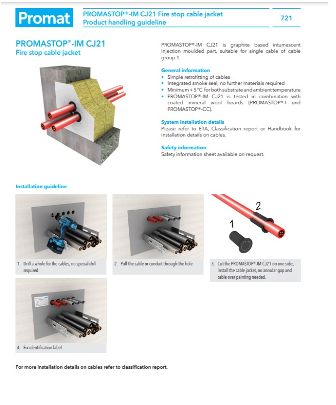 Apraksts no rokasgrāmatas par Kabeļu ugunsdrošības uzmavu PROMASTOP IM CJ21 (angļu valodā)
