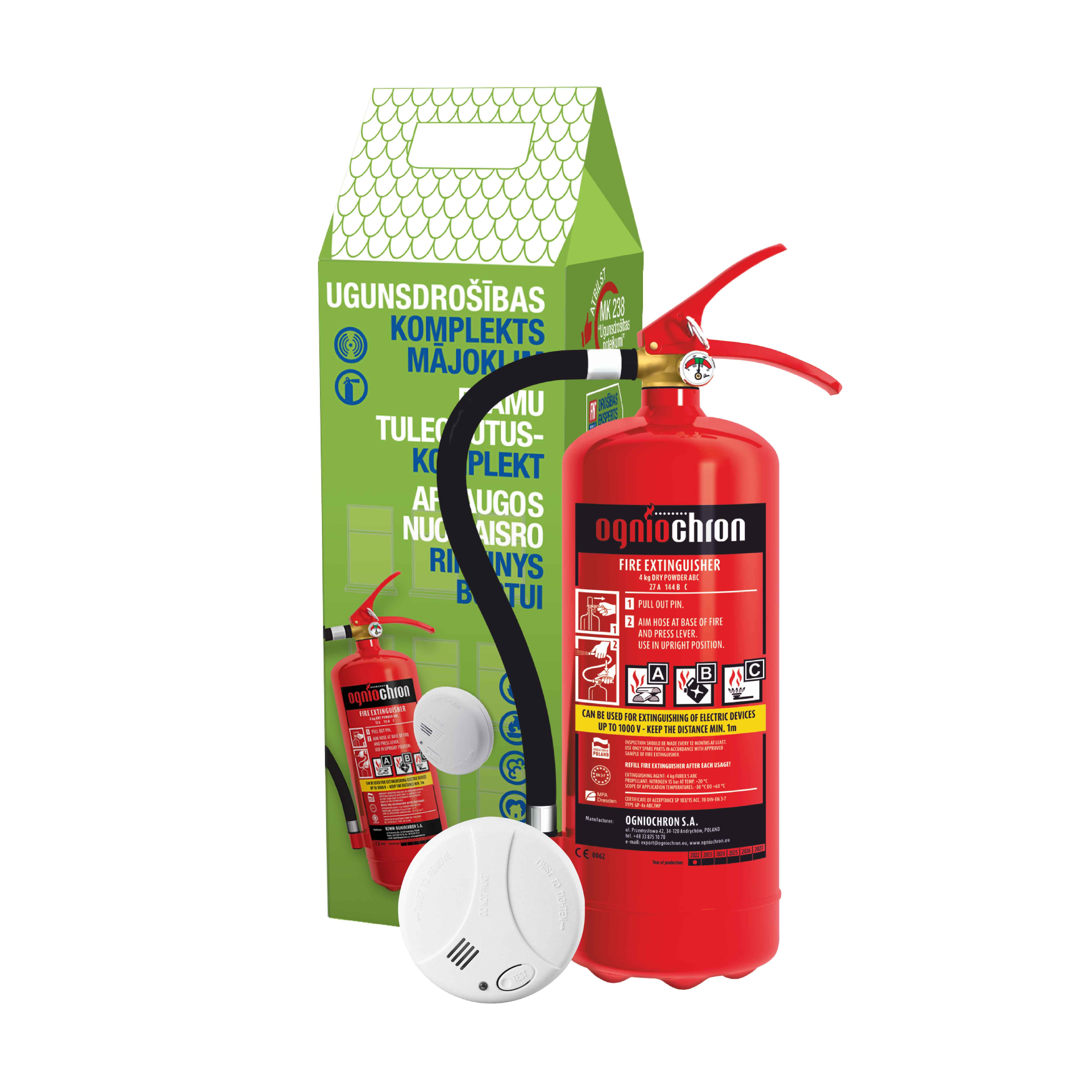 Ugunsdrošības komplekts mājoklim (ugunsdzēsības aparāts un dūmu detektors)