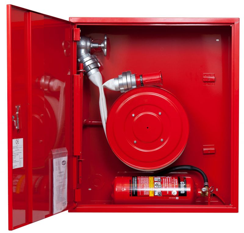 Ugunsdzēsības krānu kaste 700x800x250VK Vertikālais komplekts d52/2x15m uz ruļļa