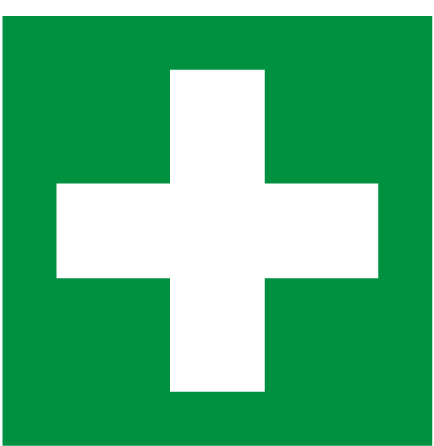 Informatīva uzlīme ar norādi ”Pirmās palīdzības punkts”.